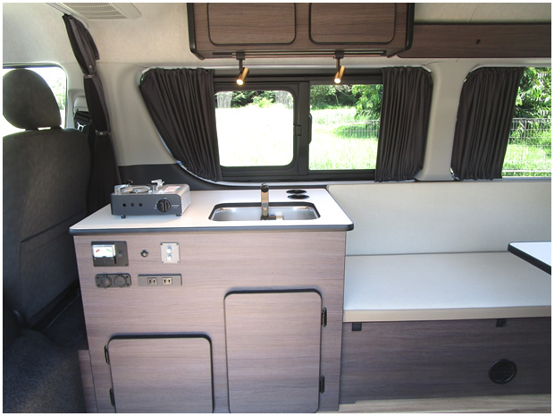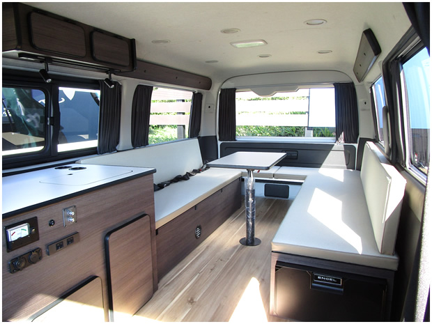 「気軽な二人旅」をコンセプトに新規製作しました。前側にキッチンキャビネットのみを配置する事で、ゆとりのスペース&同線も確保。