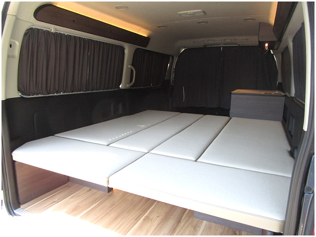 このモデルは、車中泊や趣味のトランスポーターとしても楽しんでいただけるよう、車内レイアウトや動線にこだわりました。